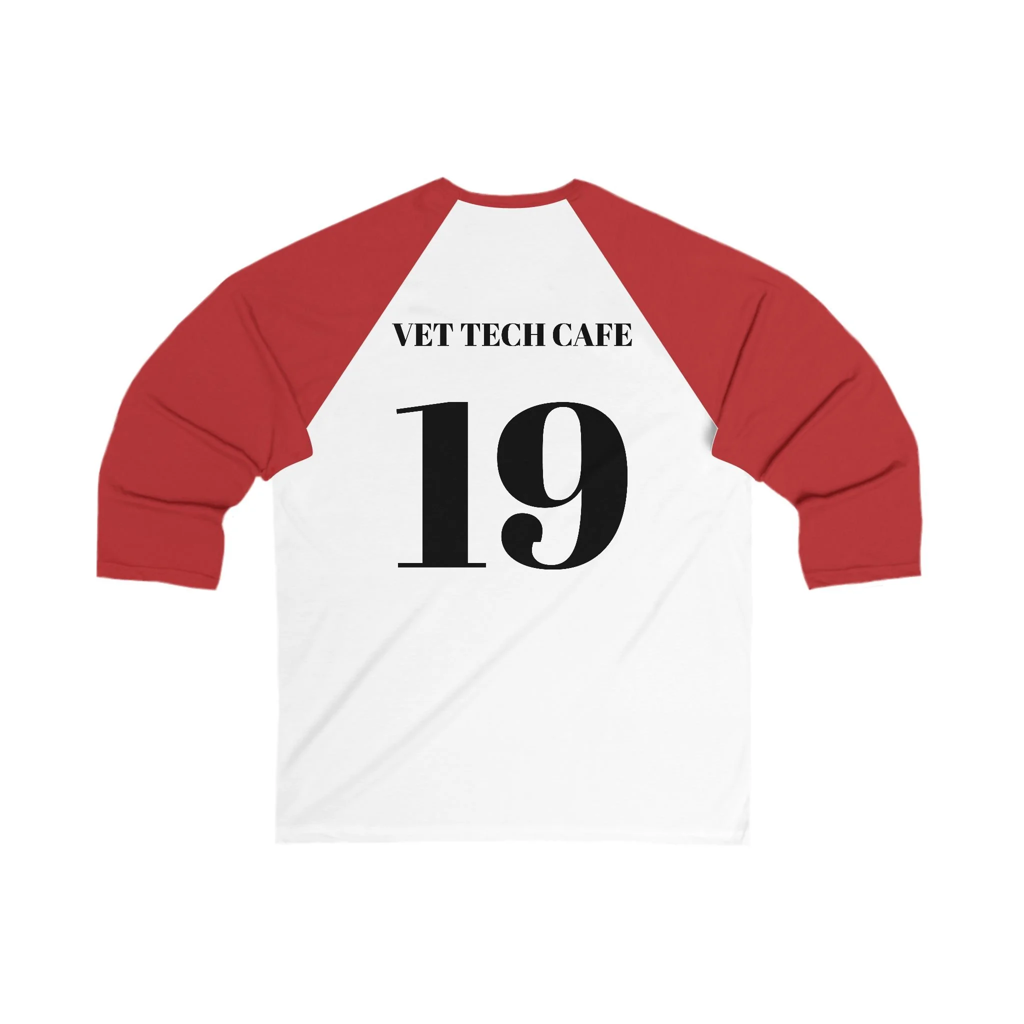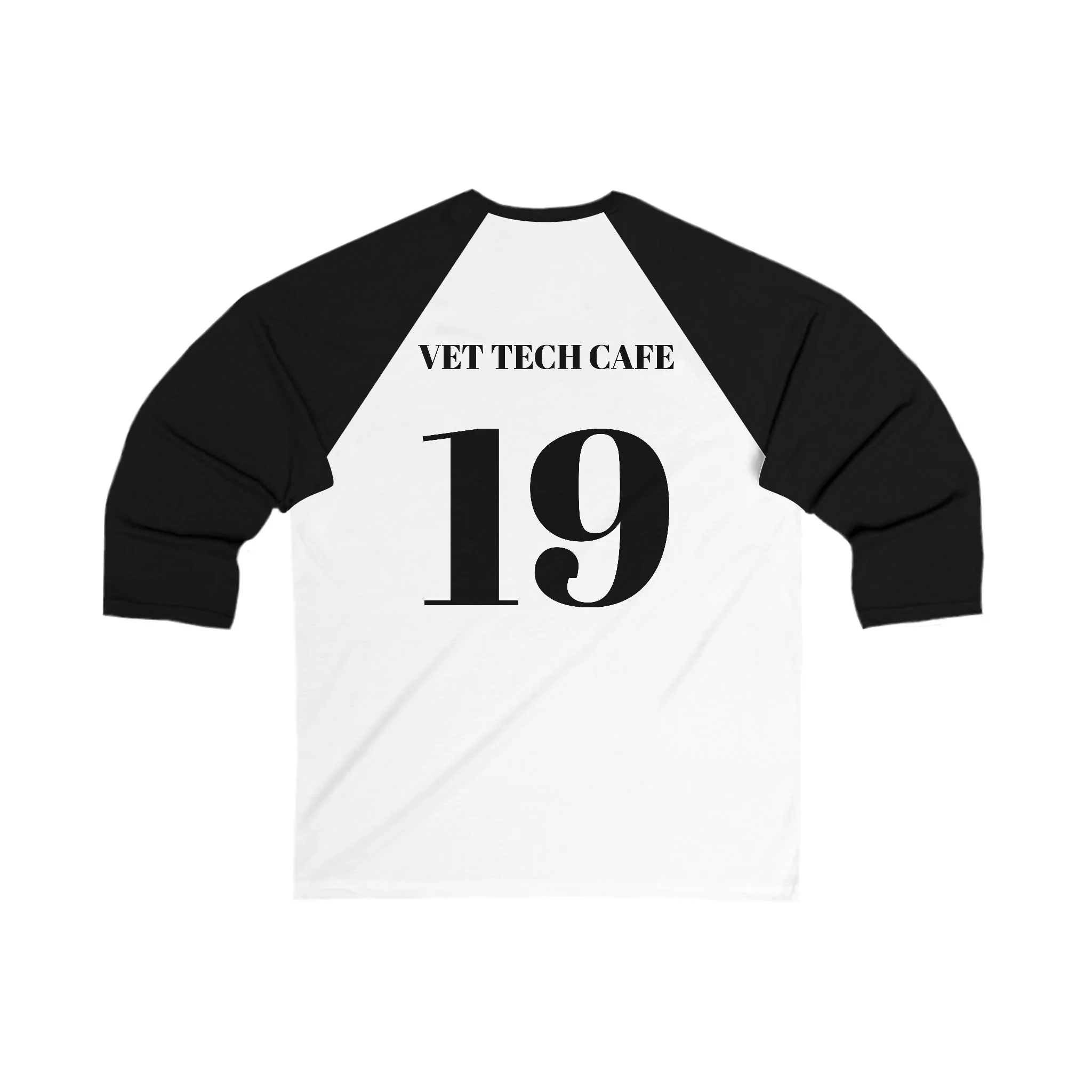 This lightweight 3/4 sleeve baseball tee brings relaxed game-day energy to everyday life. Soft white body with contrasting raglan sleeves feels breezy and broken-in from the first wear. Script lettering on the front reads “Caffeinators,” while the back sports a bold team-style number and the line “VET TECH CAFE,” giving it a playful, small‑crew spirit. Wear it to early morning shifts, weekend study sessions, or casual hangs at the coffee shop. The modern fit and breathable fabric make it easy to layer under a jacket or throw on over scrubs when you’re running between appointments. It ages well — the ribbed collar and side seams keep shape while the extra-light fabric stays comfortable all day.